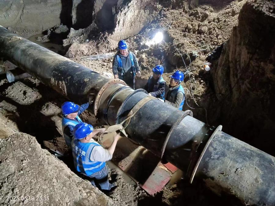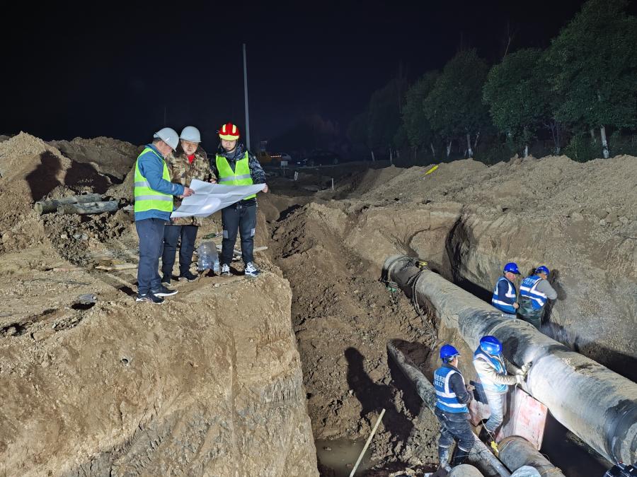 因施工影響導(dǎo)致管網(wǎng)沿線(xiàn)區(qū)域短暫停水,市水務(wù)集團(tuán)前期通過(guò)媒體、網(wǎng)站、微博等平臺(tái)進(jìn)行宣傳告知。企業(yè)用戶(hù)逐一上門(mén)進(jìn)行通知,優(yōu)化施工方案,施工物資提前調(diào)配,錯(cuò)峰施工,把因停水給企業(yè)生產(chǎn)和居民用水帶來(lái)的影響降至最小。為保證管網(wǎng)遷改的順利進(jìn)行,水務(wù)集團(tuán)供水公司組建專(zhuān)業(yè)力量針對(duì)每個(gè)遷改點(diǎn)制訂了詳細(xì)的工作預(yù)案、專(zhuān)項(xiàng)施工方案和應(yīng)急預(yù)案,明確涉及遷改的相關(guān)工作要求,提升工作效率,確保工程質(zhì)量和施工安全。公司管網(wǎng)管理部多次確認(rèn)管線(xiàn)位置走向并開(kāi)展技術(shù)交底。對(duì)于預(yù)埋管道交叉的部分采用人工探挖,對(duì)開(kāi)挖到的第三方管線(xiàn)采取有效的保護(hù)措施,待管線(xiàn)探明后采用機(jī)械開(kāi)挖,確保施工現(xiàn)場(chǎng)安全有序。施工中,加強(qiáng)與業(yè)主和監(jiān)理就突發(fā)狀況的溝通和協(xié)調(diào),加強(qiáng)施工現(xiàn)場(chǎng)工程質(zhì)量和安全監(jiān)督,完善過(guò)程資料,優(yōu)化細(xì)化遷改工序。做好停水計(jì)劃,將停水時(shí)間縮減到最短,停水范圍優(yōu)化到最小。項(xiàng)目遷改DN800管道口徑,總長(zhǎng)度110米。公司投入3施工隊(duì),40余人,采用分段式施工,其中白天進(jìn)行開(kāi)挖、鋪設(shè)、遷移等工序。為了把因停水給居民帶來(lái)的影響降至最小,管網(wǎng)碰頭、合攏等采取夜間停水施工。供水管網(wǎng)的讓道不僅保障了淮宿蚌城際鐵路(淮北段)建設(shè)的順利推進(jìn),而且改遷后的供水管線(xiàn)質(zhì)量、沿線(xiàn)水質(zhì)、水壓安全穩(wěn)定。