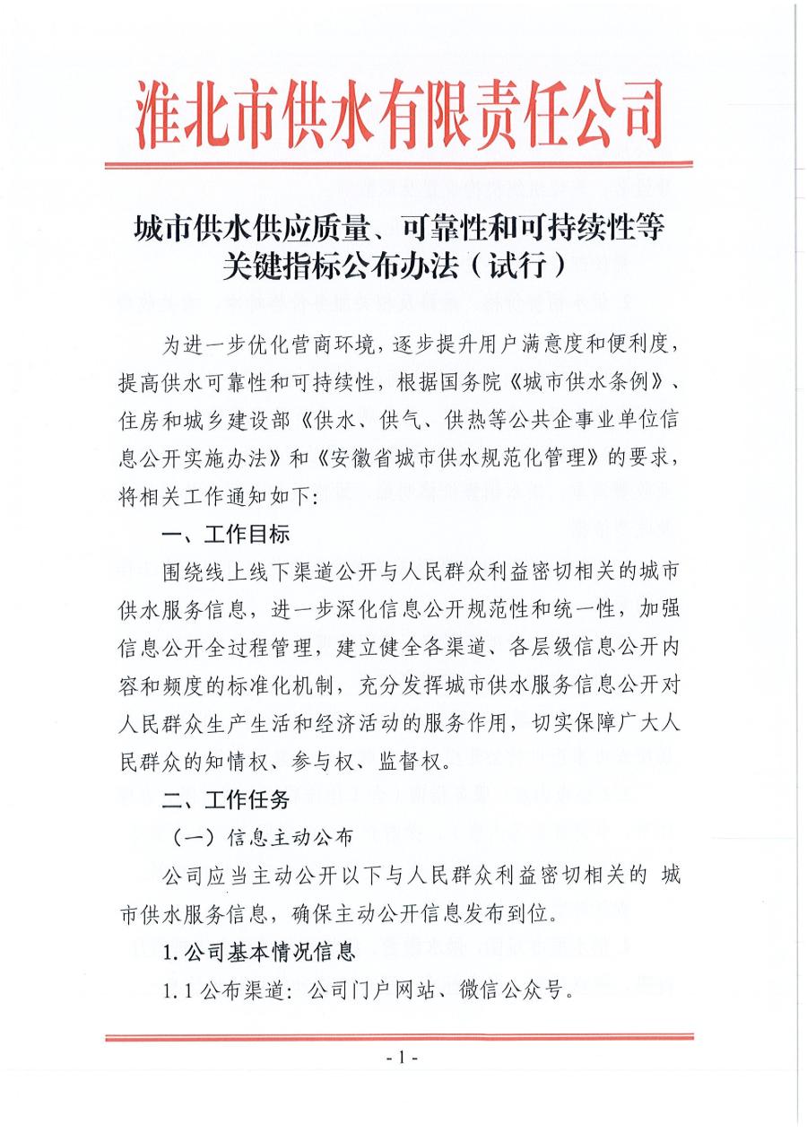 城市供水供應質(zhì)量、可靠性和可持續(xù)性等關鍵指標公布辦法(試行)