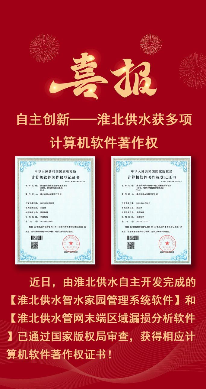 自主創(chuàng)新——淮北供水獲多項(xiàng)計算機(jī)軟件著作權(quán)