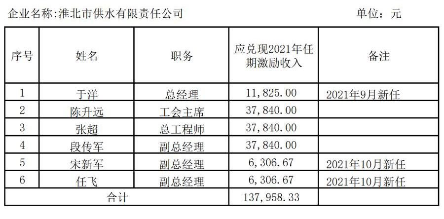 企業(yè)負(fù)責(zé)人2021年任期激勵(lì)收入兌現(xiàn)情況表