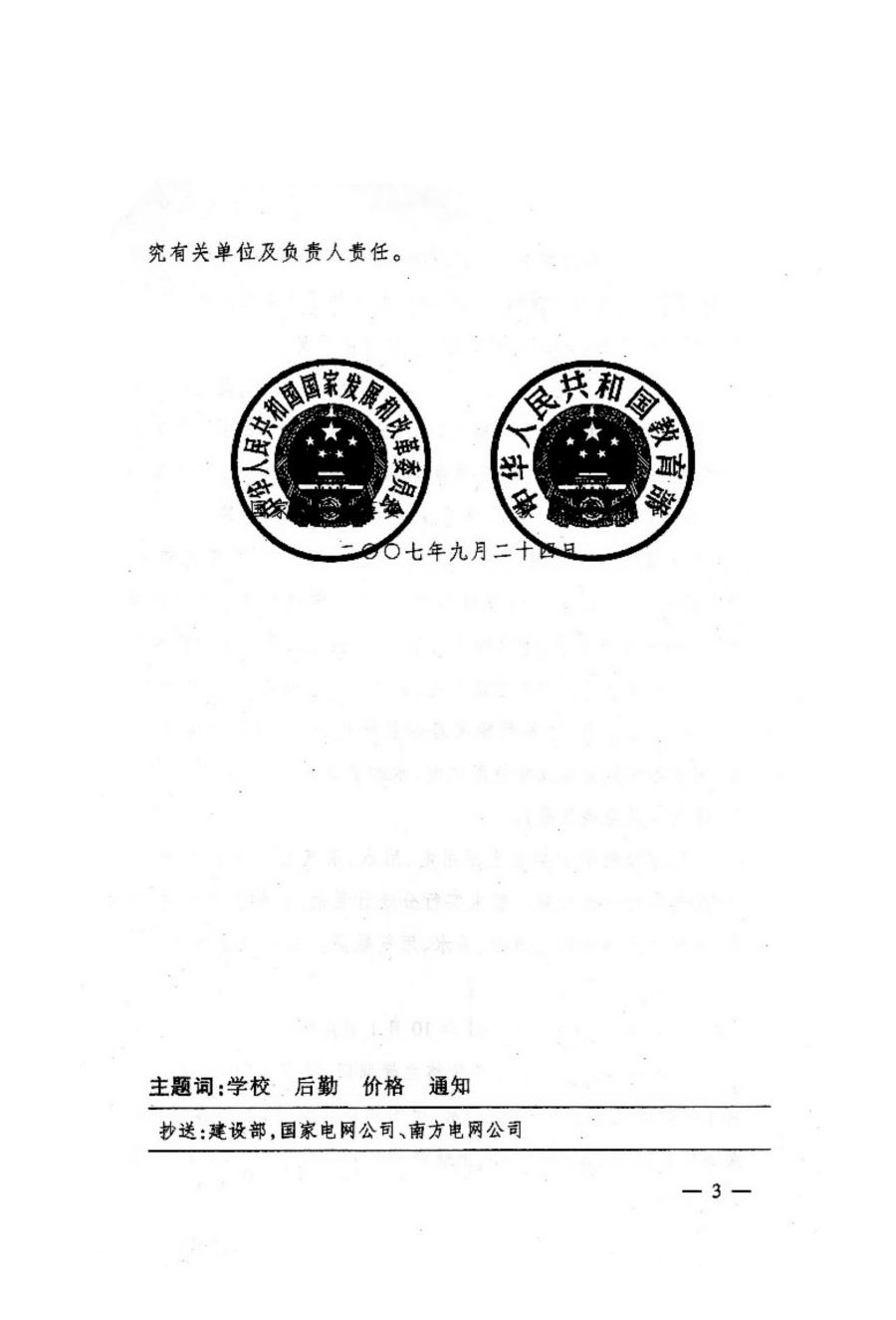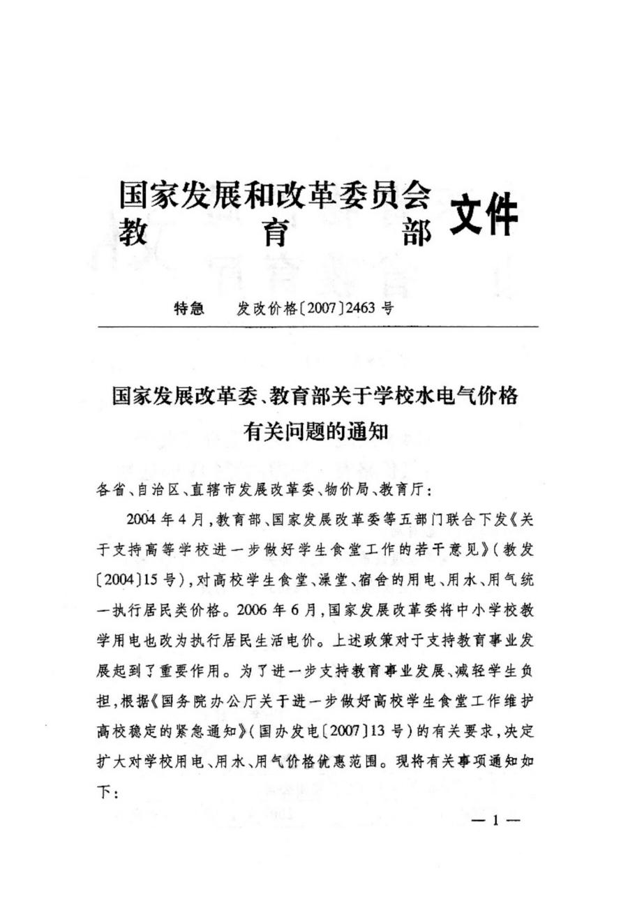 國(guó)家發(fā)展改革委、教育部關(guān)于學(xué)校電氣價(jià)格有關(guān)問(wèn)題的通知 發(fā)改價(jià)格【2007】2463號(hào)