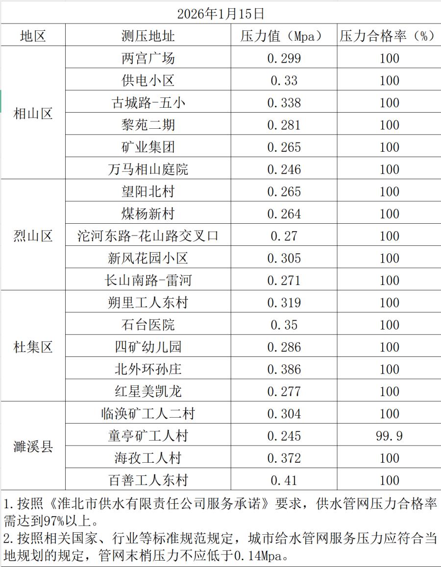 2026年1月15日水壓抽測公示