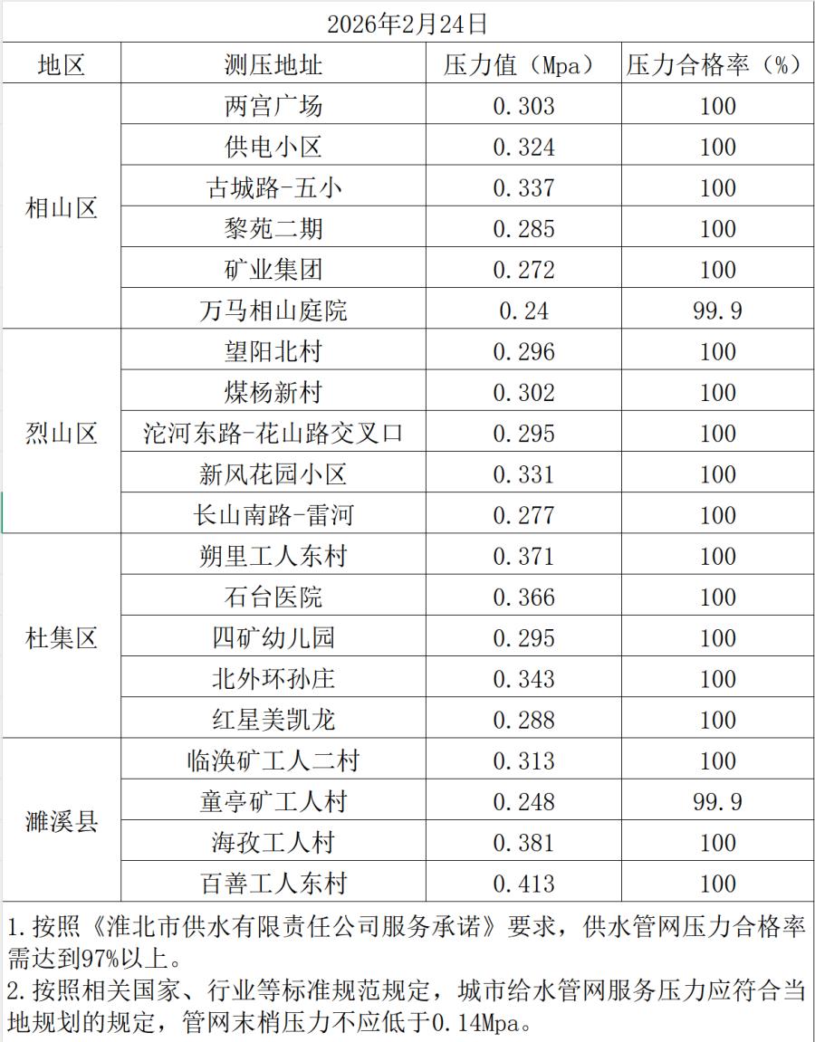 2026年2月24日水壓抽測公示