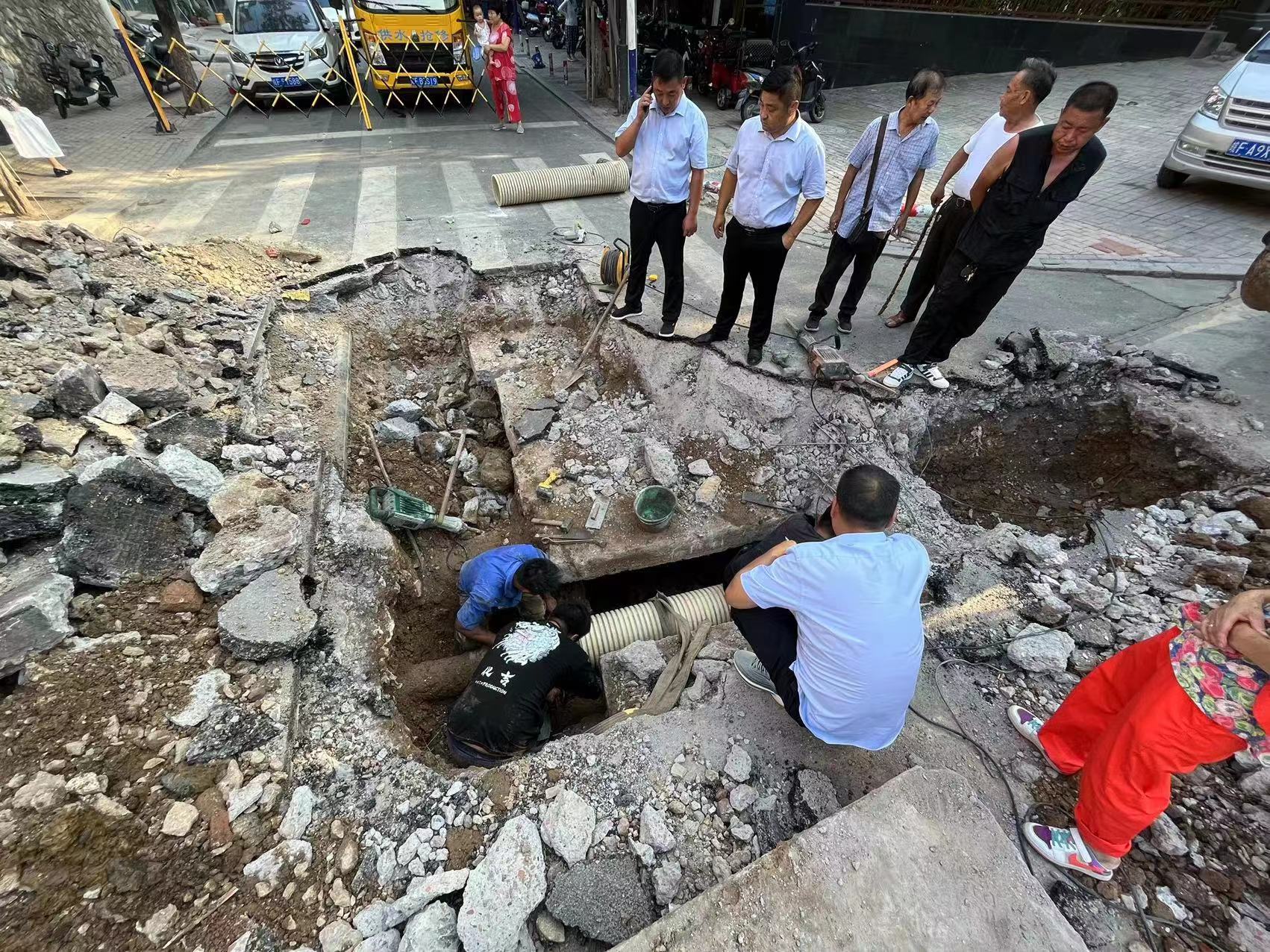管網(wǎng)部立即對(duì)漏水點(diǎn)展開(kāi)了搶修工作,漏水點(diǎn)在環(huán)山西路中間位置。為了過(guò)往車輛和施工人員的安全,立即匯報(bào)至交警部門(mén),得到批準(zhǔn)后對(duì)環(huán)山西路進(jìn)行了封路。搶修工人頂著高溫天氣,經(jīng)過(guò)8個(gè)小時(shí)的奮戰(zhàn),終于將漏水管道修復(fù)完成,確保了居民正常用水。晚上21時(shí),清運(yùn)多余的余土和開(kāi)挖溝槽的回填,恢復(fù)環(huán)孟西路正常通行。8月18日凌晨1時(shí),瀝清路面恢復(fù)完畢,開(kāi)始清掃、沖刷開(kāi)挖處路面的污垢。直至凌晨3時(shí),搶修工作全部完成。